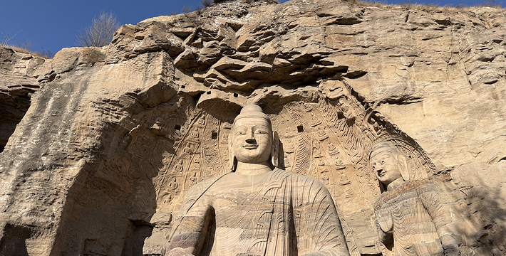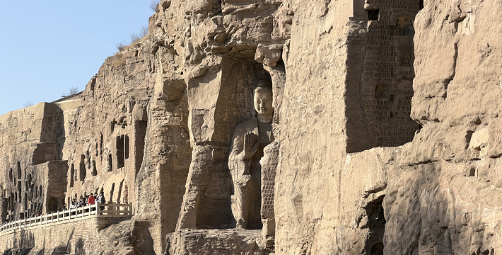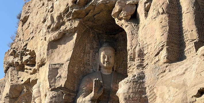 云冈石窟位于中国山西省大同市城西约16公里的武州(周)山南麓、武州川的北岸,地理位置为东经113º20’,北纬40º04’。石窟依山开凿,规模恢弘、气势雄浑,东西绵延约1公里,窟区自东而西依自然山势分为东、中、西三区。现存主要洞窟45个,附属洞窟209个,雕刻面积达18000余平方米17米2厘米,佛龛约计1100多个,大小造像51000余尊。云冈石窟距今已有1500年的历史,是佛教艺术东传中国后,是公元5世纪中西文化融合的历史丰碑。1961年3月被国务院公布为首批全国重点文物保护单位;2001年12月被联合国教科文组织批准列入“世界文化遗产”名录;2007年5月成为国家首批5A级旅游景区。云冈石窟原名武州(周)山石窟寺,明代改称云冈石窟。北魏地理学家郦道元《水经注·灅水》记载:“武州川水又东南流,水侧有石,祗洹舍并诸窟室,比丘尼所居也。其水又东转迳灵岩南,凿石开山,因岩结构,真容巨壮,世法所稀,山堂水殿,烟寺相望,林渊锦镜,缀目新眺”。作为北魏建都平城(今山西大同)时期的大型石窟寺文化遗存,是从北魏文成帝复法启开凿之始,到北魏正光年间终结,大致历经了近70年之久,石窟艺术内容丰富,雕饰精美,是当时统治北中国的北魏皇室集中全国技艺和人力、物力所雕凿,是由一代代、一批批的能工巧匠创造出的一座佛国圣殿,它以壮丽的典型皇家风范造像而异于其他早期石窟,展现的佛教文化艺术涉及到历史、建筑、音乐等多方面内容。它是东方石雕艺术的精魂,也是中西文化融合的典范,亦代表着公元5-6,在中国乃至世界艺术史上占有重要地位,与敦煌莫高窟、洛阳龙门石窟并称为中国三大石窟,亦与印度阿旃陀石窟、阿富汗巴米扬石窟并称为世界三大石雕艺术宝库。