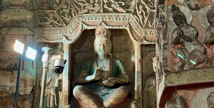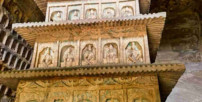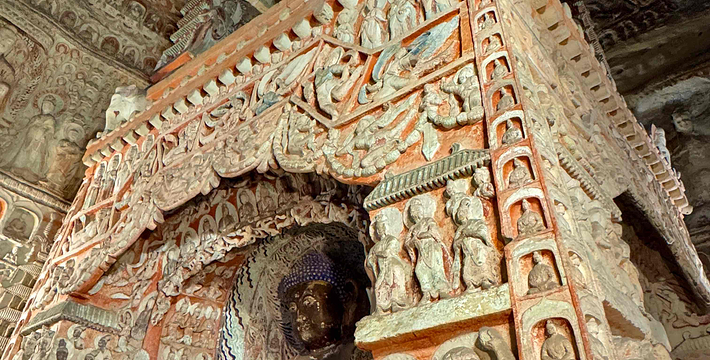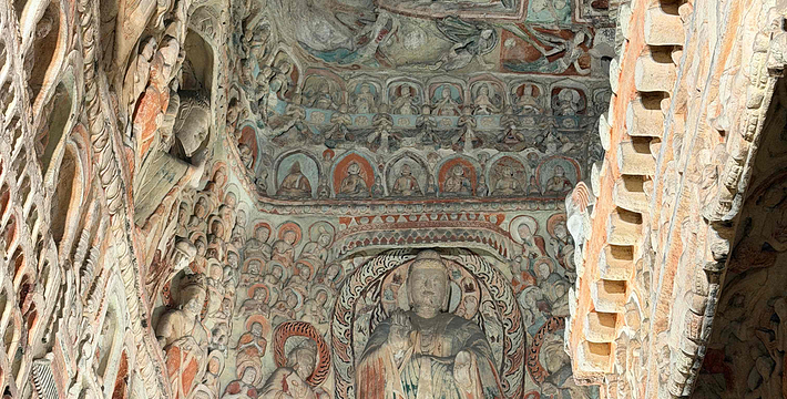 中期石窟则以精雕细琢,装饰华丽著称于世,显示出复杂多变、富丽堂皇的北魏时期艺术风格。