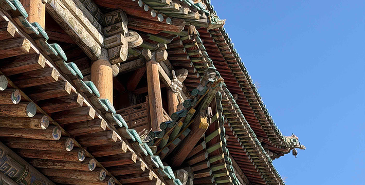 灵岩寺坐落于云冈石窟大景区的湖心岛中央,整个寺院为三进院落,是按照北魏著名地理学家郦道元在《水经注》中的描述而仿建的。