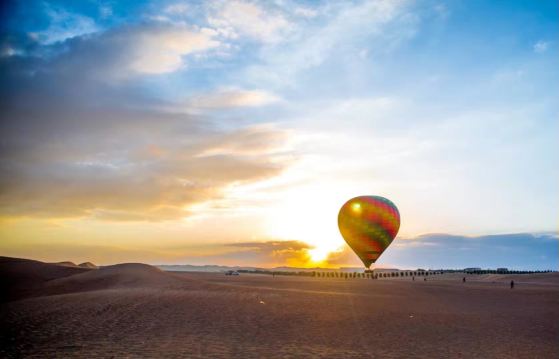 05:30 乘坐热气球缓缓升空,领略独特的沙漠风景,在荒野的沙漠中迎接清晨的第一缕阳光。