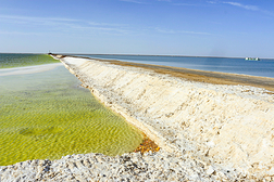 万丈盐桥在察尔汗盐湖厂矿区内,游客要把车停在进入厂矿路口的游客中心停车场,乘坐旅游大巴进去,费用每人100元;想自驾入内的可到入口处私下支付买路钱。