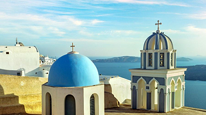 【圣托里尼出发】蓝顶教堂+卡马里+红沙滩+卡美尼岛+费拉小镇+皮尔戈斯小镇1日游