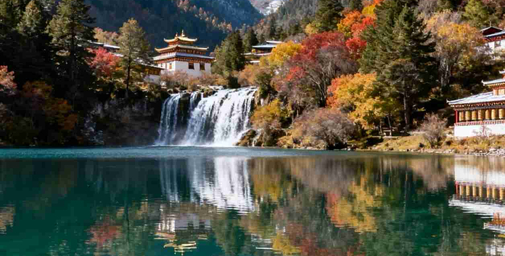 夏日,九寨沟掩映在苍翠欲滴的浓荫之中,您可以去五彩池赏杜鹃花,去诺日朗观瀑布,体会夏日清凉。