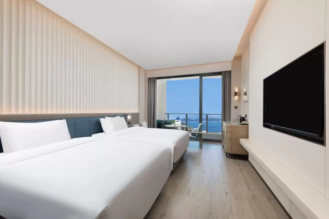 漳州东山悦华酒店坐落于“中国十大美丽海岛”福建省漳州市东山岛屿南湾核心位置,与风动石景区隔水相望,临海而建,风景旖旎。酒店占地面积约6.1万㎡,由主楼,独栋宴会厅,附楼3栋建筑、以及超2万㎡的生态园林组成,共有多间(套)温馨客房,其中海景客房的占比达到90%以上。酒店拥有浪漫的度假景观环境和完善的健康、娱乐、休闲、会议等配套设施,包括海景全日制餐厅、中餐厅、大堂吧、茶艺室、棋牌室、多功能厅、独栋无柱宴会厅、健身俱乐部、室内恒温泳池、户外泳池和亲子戏水池、小鱿鱼儿童俱乐部、室外小火车、无动力狂欢乐园及各类康乐亲子活动配套设施等。