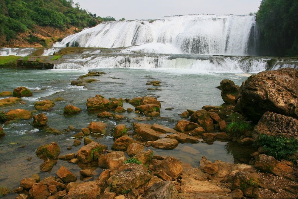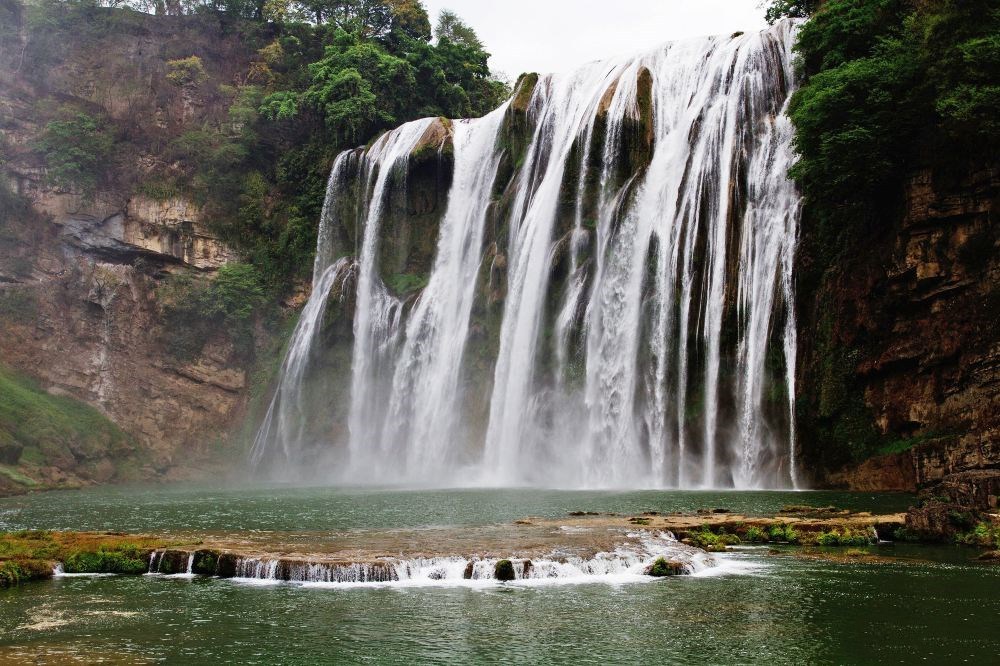 9:30(参考时间)换乘景区环保车(已含环保车50元/人),前往游览陡坡塘瀑布。这里是黄果树瀑布群中瀑顶最宽的瀑布,平水时候水流清澈,称“新娘面纱;但当洪季来临,水势凶猛,又称为“吼瀑”。这里也是唐僧师徒四人取经的必经之地