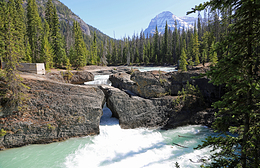 从灰熊镇开到露易丝湖229km,过了灰熊镇就进入山地地貌了,首先进入Yoho National Park优鹤国家公园,一路有Kicking horse river踢马河,natural bridge天然桥,Emerald lake翡翠湖,Takakkaw瀑布,Spiral tunnel螺旋隧道等景点。