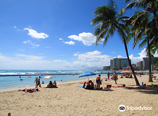 (三) 檀香山的威基基海滩(Waikiki Beach),是世界最著名的海滩之一。 一年四季风光妩媚,气候宜人;尤其夏天,是最好的避暑胜地之一。 每当日出日落,景色变幻,如花盛开,对于喜爱摄影的旅游者来说,最佳拍摄期,概是黄昏夕阳缓缓落入海平面时,妍丽之处实在是枚不胜举。 第二天起,所住的酒店,便接近海滩,除了散步观景方便之外,饮食、购物、公交等都方便。 酒店内设施也基本齐全,有咖啡厅、早餐厅、室外游泳池、健身室、Spa等。 早餐接近中餐,早餐不错。 看评论对早餐有分歧,估计因来自大都市的游客已习惯了某种餐饮内容和形式;而来自其它区域的游客,又习惯了另种内容和形式,各自期望不同。 所谓众口难调,可见一斑。 世人总是如此,唯共和解之;所谓共和,便是和而不同、存异而求同。 好在对自然景色,大众的审美比较一致。 如威基基海滩,日照人心。不由想起海子的诗句,“面朝大海,春暖花开”。