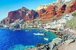 【圣托里尼出发】蓝顶教堂+卡马里+伊莫洛维里小镇+桑托林岛+费拉小镇+伊亚小镇+贝里沙海滩+伊亚城堡+Skaros岩石+3 Domes Viewpoint1日游