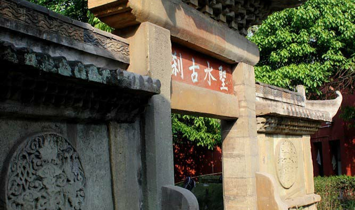 座落于四川内江市城郊的圣水寺系四川省的八大丛林之一”,因其历史久远,古迹遍刹,高僧大德辈出,在四川佛教界享有崇高的地位。如今是内江市佛教协会驻地。圣水寺初建于唐代咸通年间,即公元860―870年,宋代始名兴慈禅院,后因寺后山有泉水流出,终年不涸,水质清纯,甘甜爽口,被视为灵泉,故更名为“圣水寺”。圣水寺占地面积2万平方米,建筑面积8千多平方米,庙房200多间,常住僧伽50余人。有完善的住宿和参饮设施。寺院属依山式建筑,院落式布局。它共分4大院落:中轴线上自西向东布局的圆觉楼、藏经楼、大雄宝殿、天王殿,均属明清风格;中轴两侧是回廊,有客堂、五观堂、禅堂、念佛堂等;寺院左侧有玉佛殿、三圣殿、药师殿;再向左侧是观音殿和地藏殿;寺院右侧以祖师殿为主体构成一个独立的院落。圣水寺现有石刻67龛、450余尊,总长60余米。从年代可分为唐、宋、元、明、清石刻群;从内容上看,有阐释教人的,有宏扬佛法的,有教化众生的,有启迪人发愿祈福的;从题材上看,有宗教的,也有世俗的。其中的千手观音石刻造像和圆觉楼的十二圆觉像,分别代表了唐、宋石刻造像的不同风格。此外,明代所建的石拱桥和放生池以及藏经楼前经幢都具有很高的史学价值。同时,圣水的书法更是琳琅满目,美不胜收。特别是明代的“名相大儒”赵贞吉所书“圣水寺”和“书圣水岩石”豪情奔放,飘逸俊秀,具有很高的艺术价值。