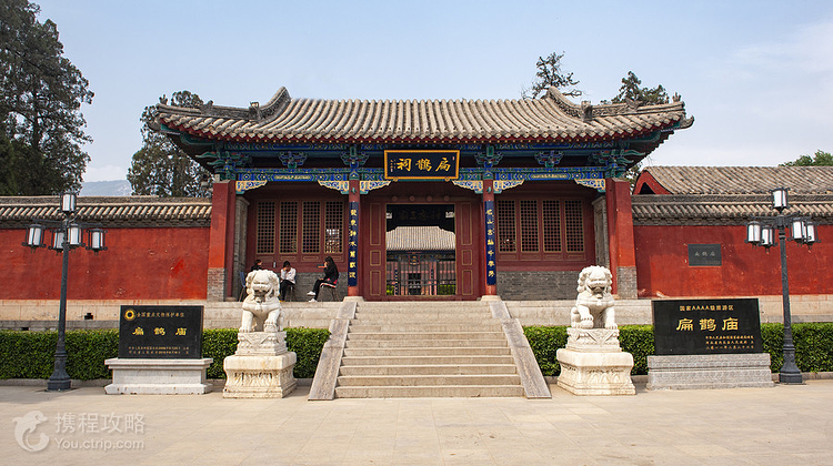 扁鹊庙又名鹊山庙,鹊王庙,始建于汉朝。位于内邱县城西21.8公里处,在太行山东麓和庄乡神头村,是内邱县历史悠久、规模宏伟、盛名于世的一处古代建筑。《顺德府志》记载:“鹊山庙者,祀扁鹊也。”扁鹊,姓秦名越人,春秋战国时代人,是我国诊脉(望、闻、问、切)的发明家,并以针灸闻名天下,有医药名著《难经》十八篇。司马迁在史记中说:“今天下言脉者,由扁鹊也。”扁鹊医德高尚,医术高明,深为广大群众乃至帝王将像王孙所敬重。晋大夫赵简为谢其治好儿子之病,将内邱蓬山4万亩土地封给了扁鹊,因而内邱成为了他的第二故乡。当他被秦太医李醯杀后,人们不远千里,跑到陕西咸阳偷偷把扁鹊的头取回,葬于庙后,把村名改为“神头村”。扁鹊庙座北向南,占地面积37200平方米,南北长310米,东西宽120米。扁鹊庙在群山环抱之中,右扶鹊山,对面越桥,桥南山腰长有九棵古柏。以扁鹊庙为中心形成了庞大的古建筑群,有山门、回升桥、扁鹊庙、桥楼殿、三清殿、献殿、寝宫殿、阎王庙、戏楼、道士院、报厦殿、后奶奶庙、睡呼庙、老母庙、玉皇殿、纺花洞、老君洞、鬼王庙、祖师庙、牛王庙、火神庙、百子殿等28个庙殿。庙殿成群,鹊王庙居中,恰似众星捧月;庙殿布局严谨,木石结构,描梁画栋,奇脊飞檐,红砖绿瓦,样式古朴壮观。庙院内松柏参天,鸟柏,还有透明碑。鹊山脚下,越桥对面50米处的九龙柏形态奇特,根象龙爪一样抓着岩石生长,故此得名。