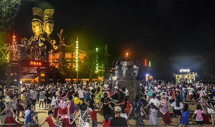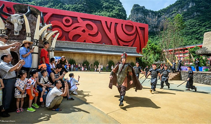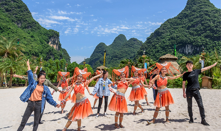 大型歌舞《桂林千古情》是一生必看的演出,用独特的导演手法、全新的表现形式,彰显宋城品质、国际水平。演出分为序《远古的呼唤》《大地飞歌》《米粉传情》《靖江王府》《刘三姐》等幕,金戈铁马,美女如云,再现了一段三生三世的桂林绝恋。演出运用先进的声、光、电、全息等高科技手段和舞台机械,数百位演员倾情演绎,在水陆空三维立体空间,唱响了八桂大地穿越时空的真善美传奇,将掩藏在八百里漓江山水下的八桂文化带入大家的视野。视觉盛宴,心灵震撼!